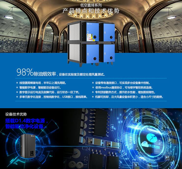 低空直排(超潔)系列,科藍(lán)環(huán)保靜電式餐飲油煙凈化器。